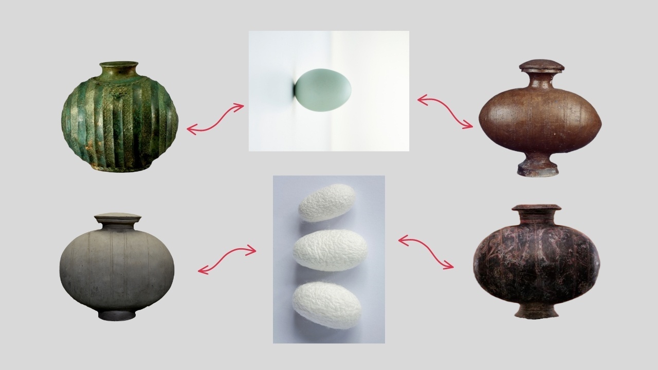 △部分茧形壶与鸭蛋、蚕茧的形似对比图