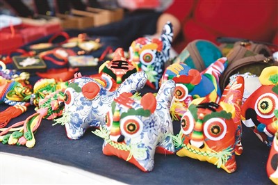 民族的也是世界的。北京绢人、密云玲珑枕等北京非遗特色产品摊位前,大量外国友人驻足观看。“刚有一位小女孩对我们的花旦绢人爱不释手,一个劲儿地夸‘真漂亮’。”一位展销北京绢人的摊主笑着说。