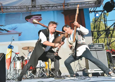 罗马尼亚乐队“达契亚之狼”正在表演。