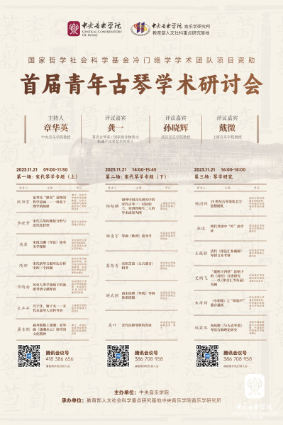 由中央音乐学院音乐学研究所章华英教授负责申报的“宋代古琴文献的整理、编纂与研究”,于2020年12月入选国家哲学社会科学基金冷门绝学学术团队项目。首批入选的在全国亦仅20项,也是该年度全国唯一入选的艺术学类项目。今年,恰逢中国古琴艺术申遗成功二十周年,为了进一步推动古琴艺术的学术研究,弘扬中华优秀传统文化,展现琴学领域的最新成果,同时,亦为了给有志于琴学研究的青年学者和硕博士研究生提供一个交流、学习的平台,中央音乐学院音乐学研究所特此举办首届青年古琴学术研讨会暨中国琴学专题讲座。