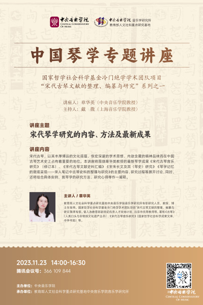 本次专题讲座主要阐释章华英教授近年来在宋代琴学方面的最新研究成果及研究心得、研究方法等。今后,本所还将陆续推出国内外知名琴家、学者的琴学专题讲座。