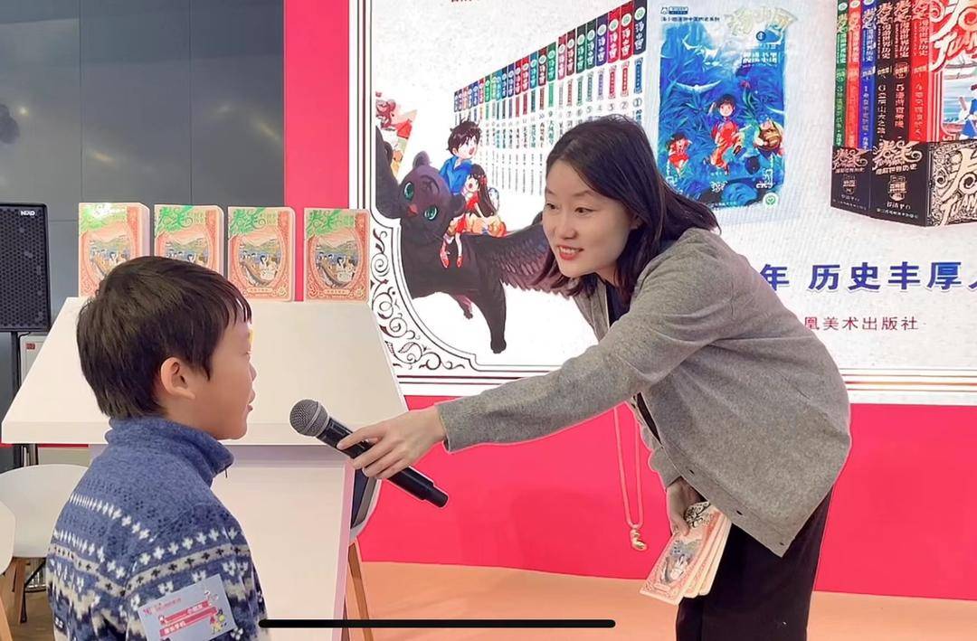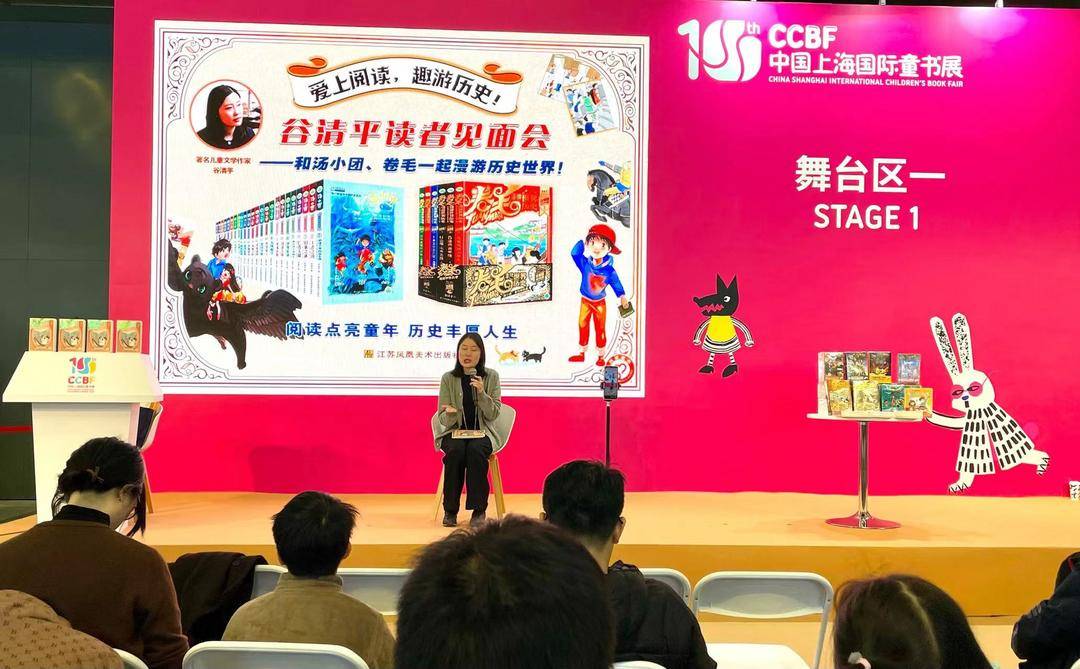 2023年11月19日,大型原创儿童历史小说“汤小团漫游中国历史”&“卷毛漫游世界历史”系列图书作者谷清平如约来到“2023上海童书展”活动现场,与广大小读者们共赴一场穿越中外历史的奇幻旅程。江苏凤凰美术出版社副总编辑朱婧出席本次活动。