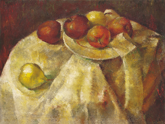 《无题(有苹果的静物)》(Sans titre [Nature morte aux pommes]),1935-1936年,布面油画,46 × 61 cm,摄影:Antoine Mercierⓒ 赵无极 - ProLitteris,苏黎世