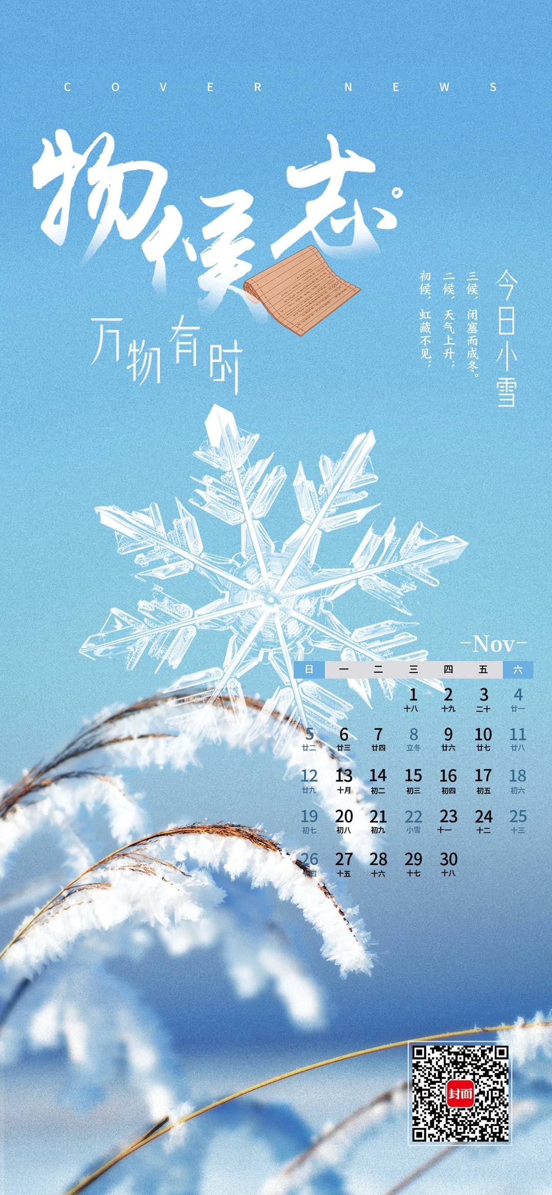 11月22日,在初冬的寒意中,小雪节气如期而至了。据古籍《群芳谱》记载:“小雪气寒而将雪矣,地寒未甚而雪未大也。”其意为,“小雪”节气由于天气寒冷,降水的形式由雨改为雪,但此时由于“地寒未甚”,故雪量还不足,因此称作小雪。
