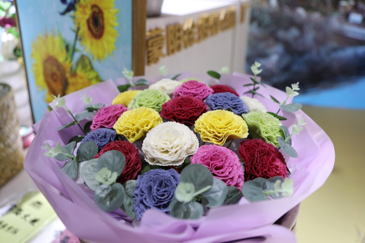 作为版权资源大省,此次山东展区精心遴选了一批版权与创意产业有机结合的典型代表参展。来自山东临沂的徐海霞通过创意巧思用果蔬汁调色,把煎饼做成花,凭着一双巧手圈粉无数。目前已注册“煎饼侠”“煎饼花”“常路大嫂”等多个商标,研制出50多个花样品种,不仅销往全国20多个省区,还出口韩国、美国、新加坡等海外市场。