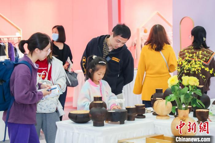 第十七届杭州文博会现场,民众在工艺品摊位前驻足。杭州文博会供图