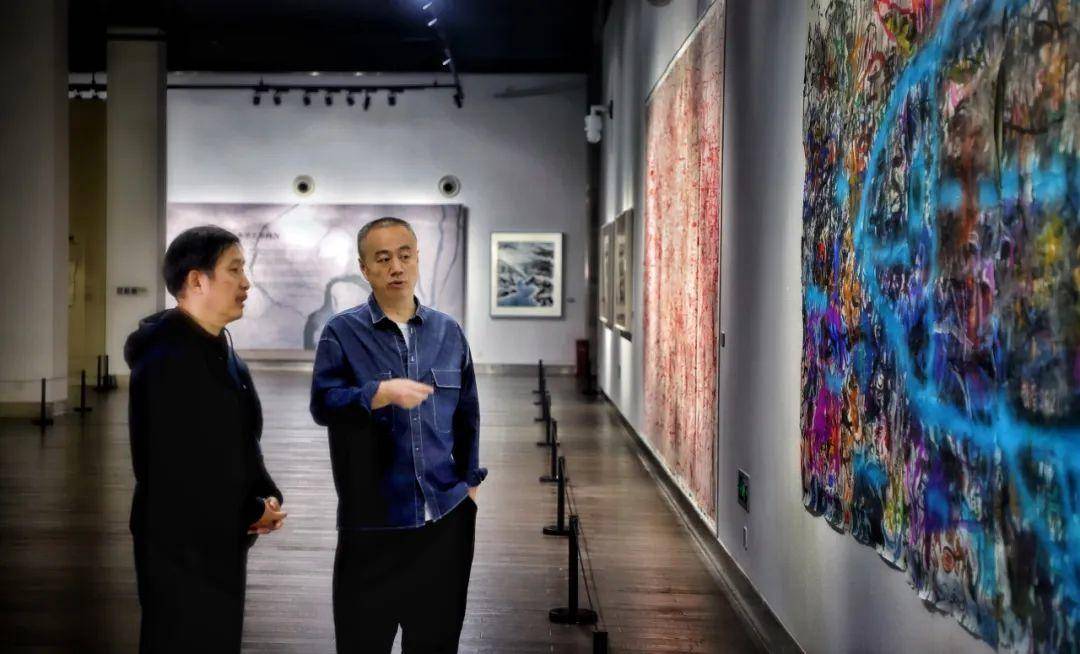 学术主持顾丞峰和策展人刘春杰在展厅现场