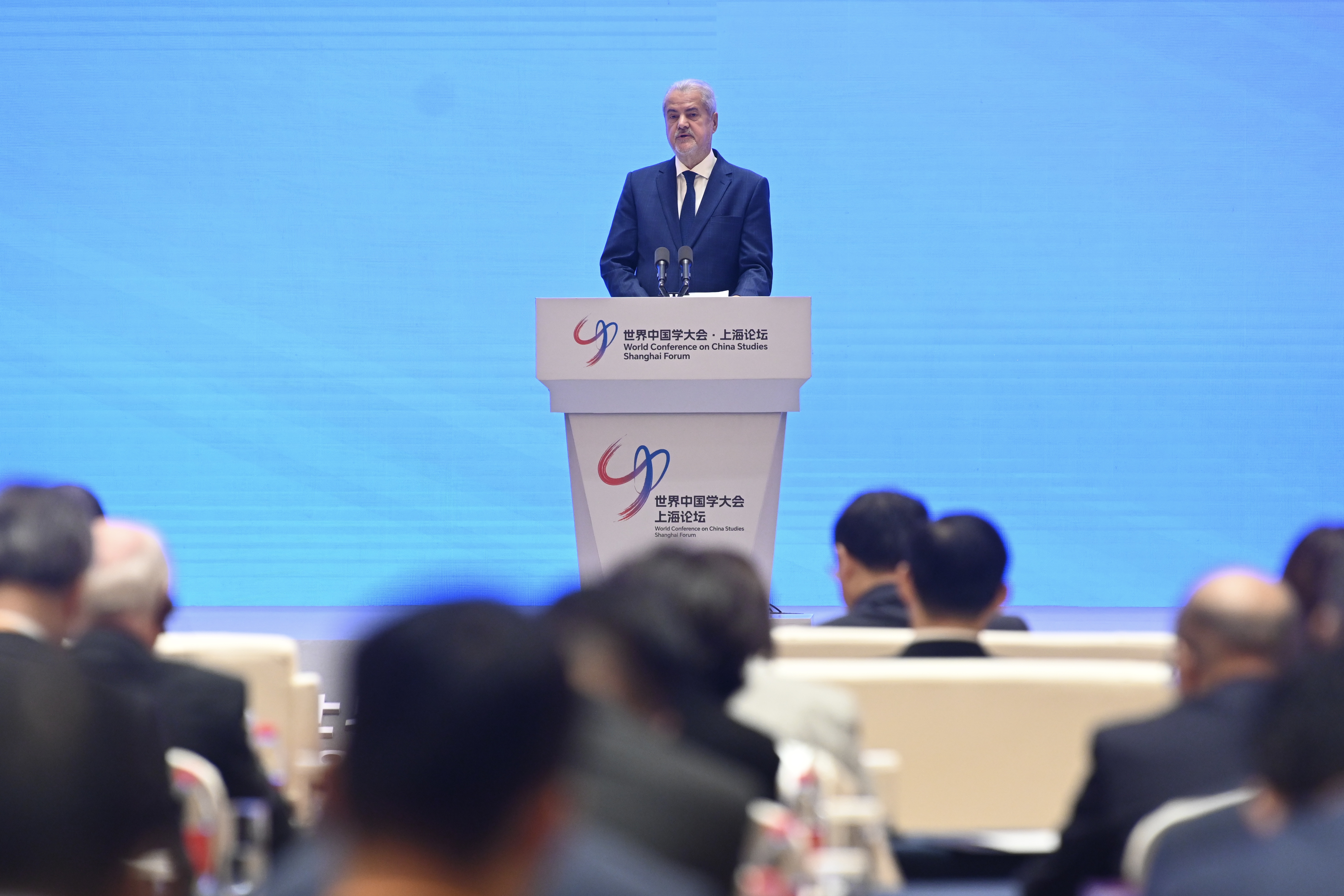 11月24日上午,世界中国学大会·上海论坛在黄浦江畔的上海国际会议中心开幕。400余位海内外知名专家学者,围绕“全球视野下的中华文明与中国道路”主题,和四个平行分论坛议题深入探讨、交流。会上宣布中国学研究联合会成立与2023中国学贡献奖获得者。