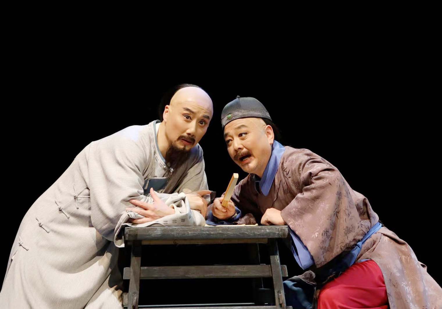 在剧中,以郑板桥这位士大夫为主题,带出了一群人,一些事。剧中一个人物的轴线,抓住一个关键点——郑板桥身上所具备的与时代、与市井、与官场等等方面的不协调。而喜剧的内驱力正来自于可笑的不协调,在戏剧艺术中,这种幽默机智的情趣被称为“黄金幽默”。《郑板桥》这部扬剧,恰恰将这种“黄金幽默”表现得淋漓尽致。