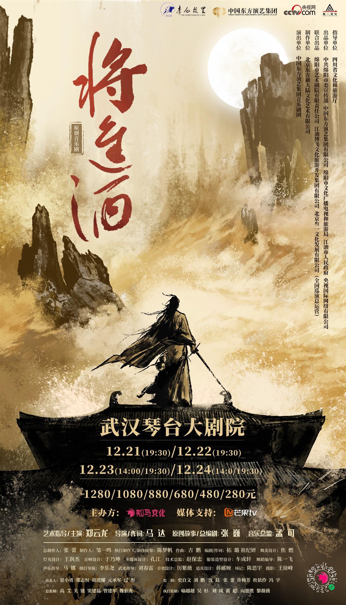 音乐剧《将进酒》由绵阳市委宣传部、中国东方演艺集团有限公司、绵阳市文化广播电视和旅游局、江油市人民政府、央视网共同出品。