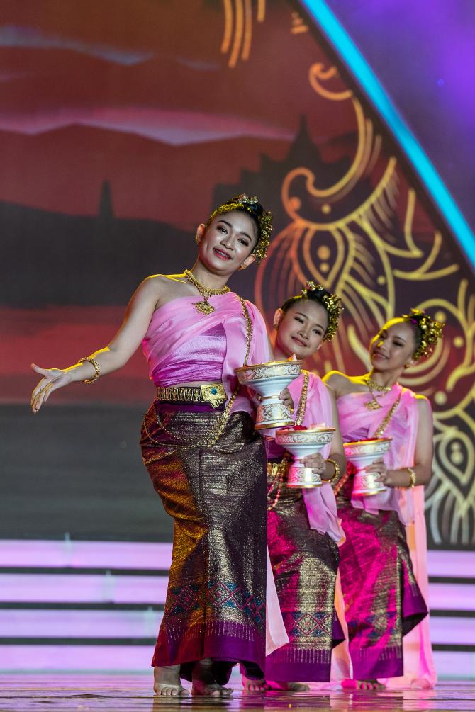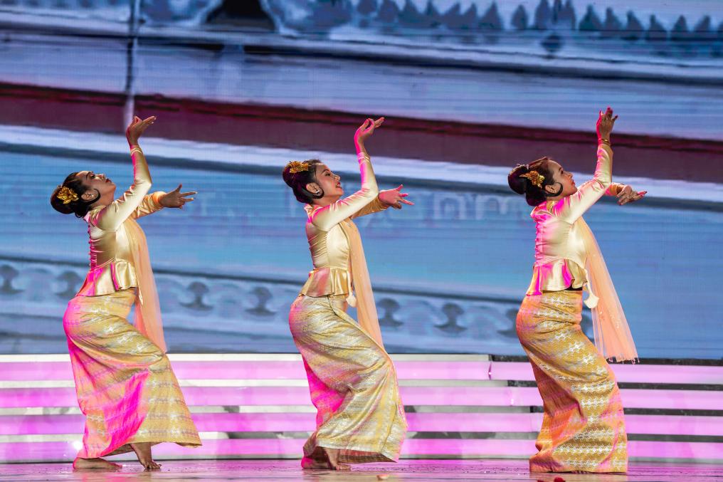 11月30日,来自缅甸的艺术工作者在表演舞蹈《吉祥如意》。