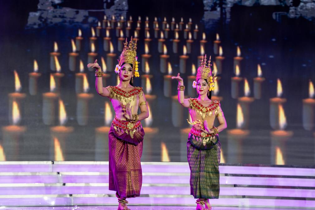 11月30日,来自柬埔寨的艺术工作者在表演舞蹈《仙女舞》。