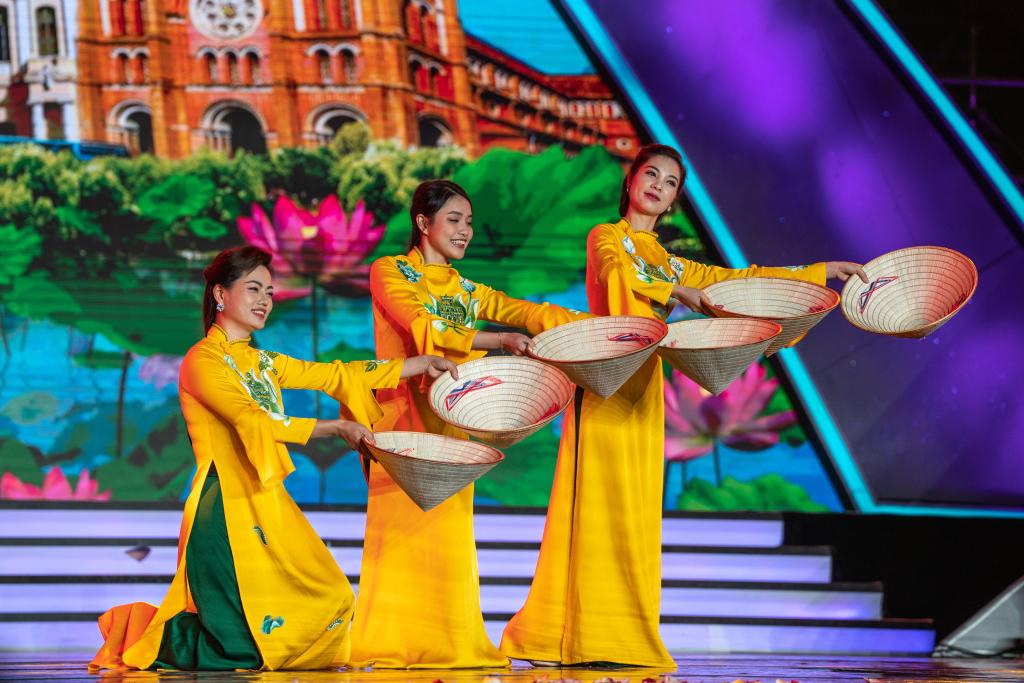 11月30日,来自越南的艺术工作者在表演舞蹈《斗笠舞》。