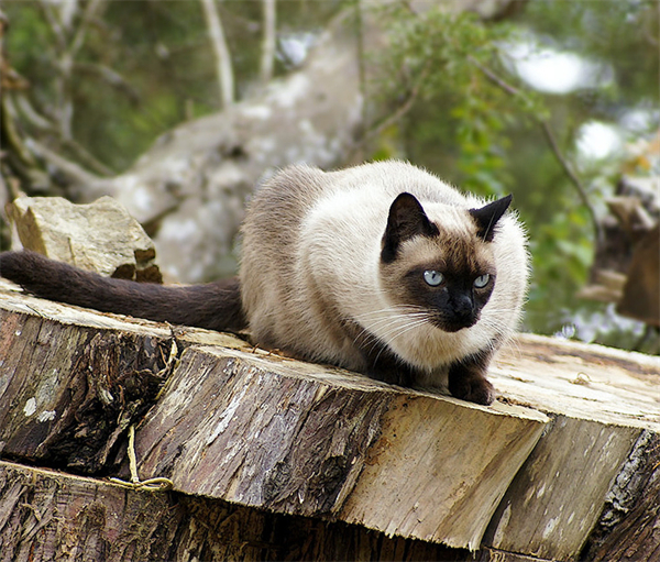 遗憾的是,《猫之诗》中提到的传统的泰国猫留存至今的只有五种。其中,最著名的是被誉为“煤老板”的暹罗猫。大多数暹罗猫都有一张小黑脸,像是顽皮的小猫一头扎进煤堆后的杰作。它们有着深蓝色或湖蓝色的眼睛。因为这双迷人的眼睛,暹罗猫也被称为“月亮钻石”。暹罗猫刚出生时全身雪白,但长大后,脸部、尾巴、脚和耳朵等部位的毛发会慢慢变成深棕色。这更与它们那美丽的蓝眼睛形成鲜明的对比。