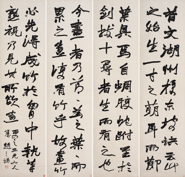 行书节录苏轼《文与可画筼筜谷偃竹记》四屏条赵之谦清代160cm×41cm×4君匋艺术院藏