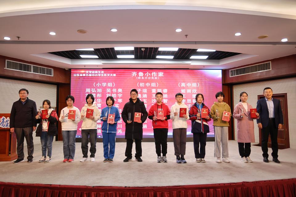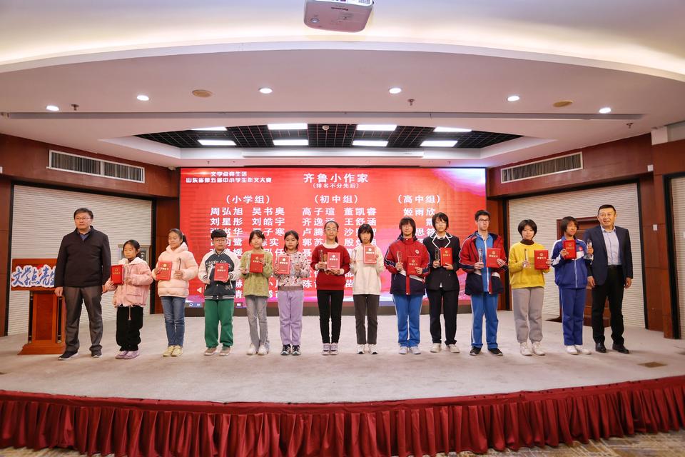 颁奖嘉宾和“齐鲁小作家”们合影