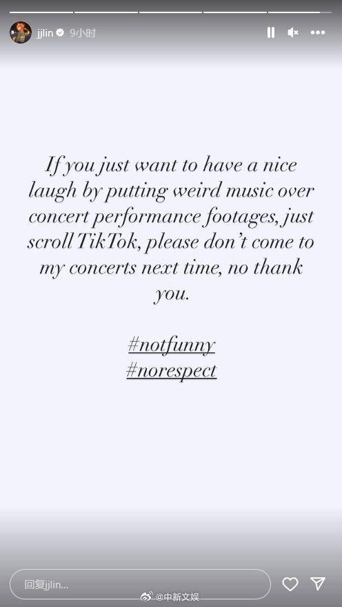 近日,歌手林俊杰在演唱会上表演的歌曲《不死之身》的舞蹈片段成为网友玩梗恶搞的热门素材,这段动作非常有节奏感的舞蹈被网友们换上了各种各样的网络热门背景音乐,不少恶搞视频爆火网络。12月4日,林俊杰在个人社交账号发文,疑似对这一系列的恶搞视频作出回应,他表示“如果你只是想通过在表演片段上加上奇怪的音乐来获得快乐,下次请不要来我的演唱会。”林俊杰的这一回应也引起了网友们的热议。