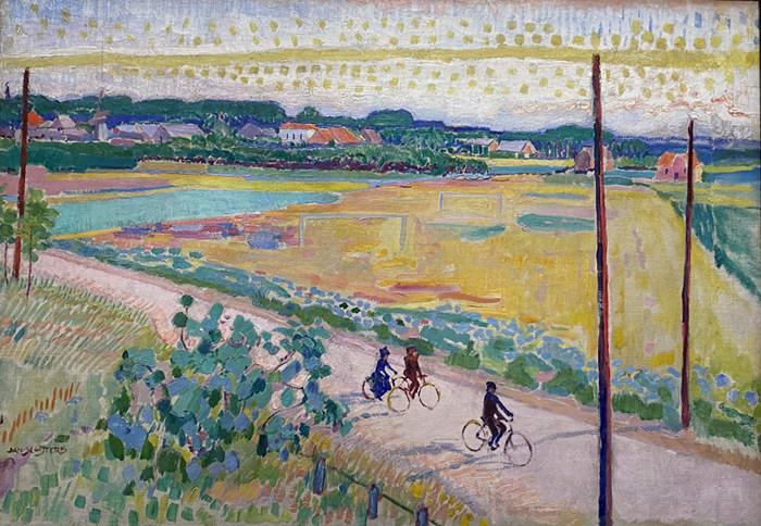 《骑自行车的人》(CyclistsinaLandscapenearLaren),扬·斯莱特斯(JanSluijters,1881-1957),约1911,荷兰拉伦辛格博物馆藏品(SingerLaren)