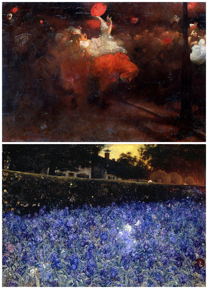 雅各布·凡·卢伊(JacobusvanLooy,1855-1930),上图:《国王节》(Oranjefest),1890-1892,荷兰国立博物馆藏品(RijksmuseumAmsterdam);下图:《七月-夏日繁花》(July-SummerLuxuriance),1900,荷兰阿姆斯特丹市立博物馆藏品(StedelijkMuseumAmsterdam)