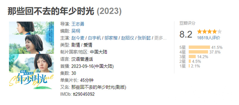 △电视剧《那些回不去的年少时光》豆瓣评分截图
