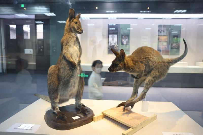小朋友观看袋鼠标本。新京报记者浦峰摄