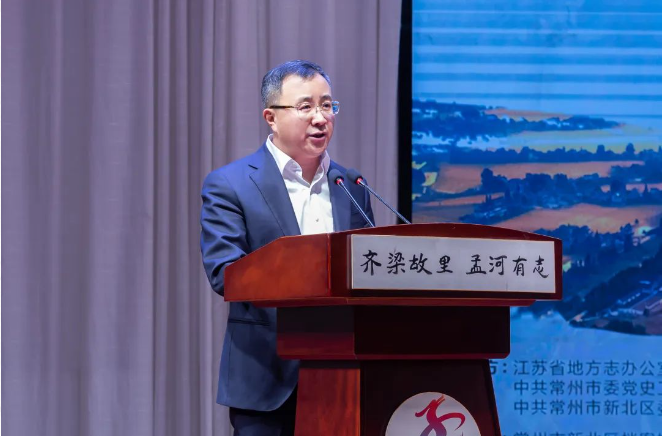 石旭涌在致辞中表示,位于常州高新区西北部的孟河镇,依山濒江、天宝物华,是第六批中国历史文化名镇。《江苏名镇·孟河镇志》出版发行以及《乡土江苏·孟河》影像志的首发上线,对孟河镇发展历史进行了回顾与总结,这既是对孟河精神血脉的传承与赓续,也是对常州高新区历史文化脉络的一次系统梳理。通过有效整合“江苏名镇名村志”、《江苏省情影像志》、方志大讲堂三大平台,常州高新区守正创新、主动作为,深入挖掘历史文化,讲好孟河故事、高新故事。