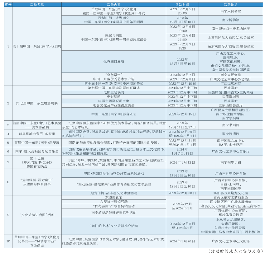 首届中国—东盟(南宁)文化月闭幕式——“风情东南亚”专场演出(2024年1月26日)等活动。