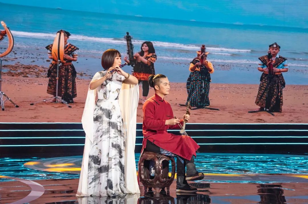 《春天的旋律·2022》跨国春晚,乐器演奏《错位时空》,由中国、印度尼西亚、越南的乐手联动演出,将多种乐器的音韵糅合,带来梦幻般的美感。宋向华摄
