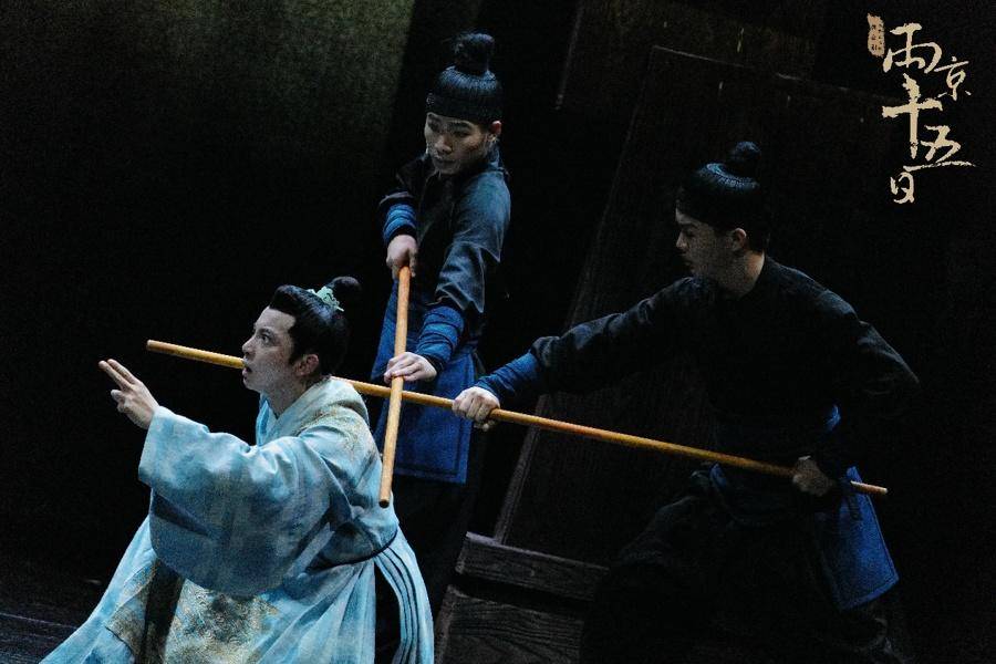 另外,“用中国语言讲中国故事”的理念贯穿全剧,将肢体剧和戏曲元素融入历史题材故事,京剧的写意表达与明代悬疑故事巧妙融合。戏曲腔调、身段元素、化用京剧《三岔口》片段,为观众带来许多传统文化惊喜。