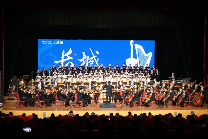 天津交响乐团年度原创巨作“——为合唱、独唱与交响乐队而作”音乐会二百人的超大演出规模,为世界人民奏响长城诗篇,弘扬长城精神。