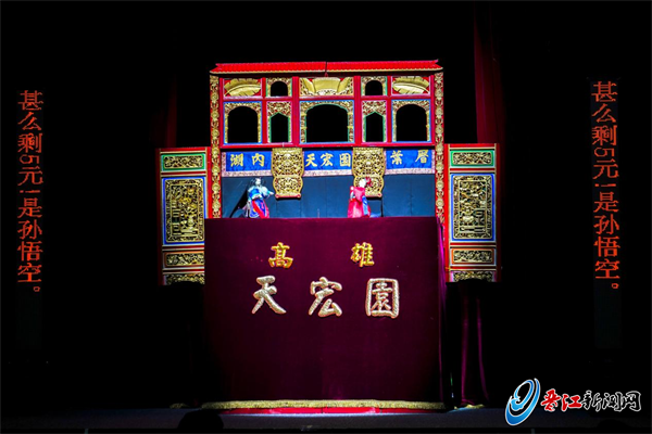 晋江新闻网讯21日晚,由台湾高雄市天宏园掌中剧团表演的布袋木偶戏《西游记——弼马温》在晋江戏剧中心木偶剧场演出,收获现场观众的一致好评。