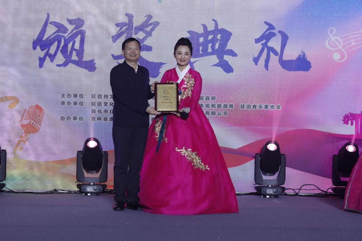 延边州文化广播电视和旅游局副局长张玉珍为银奖选手颁奖