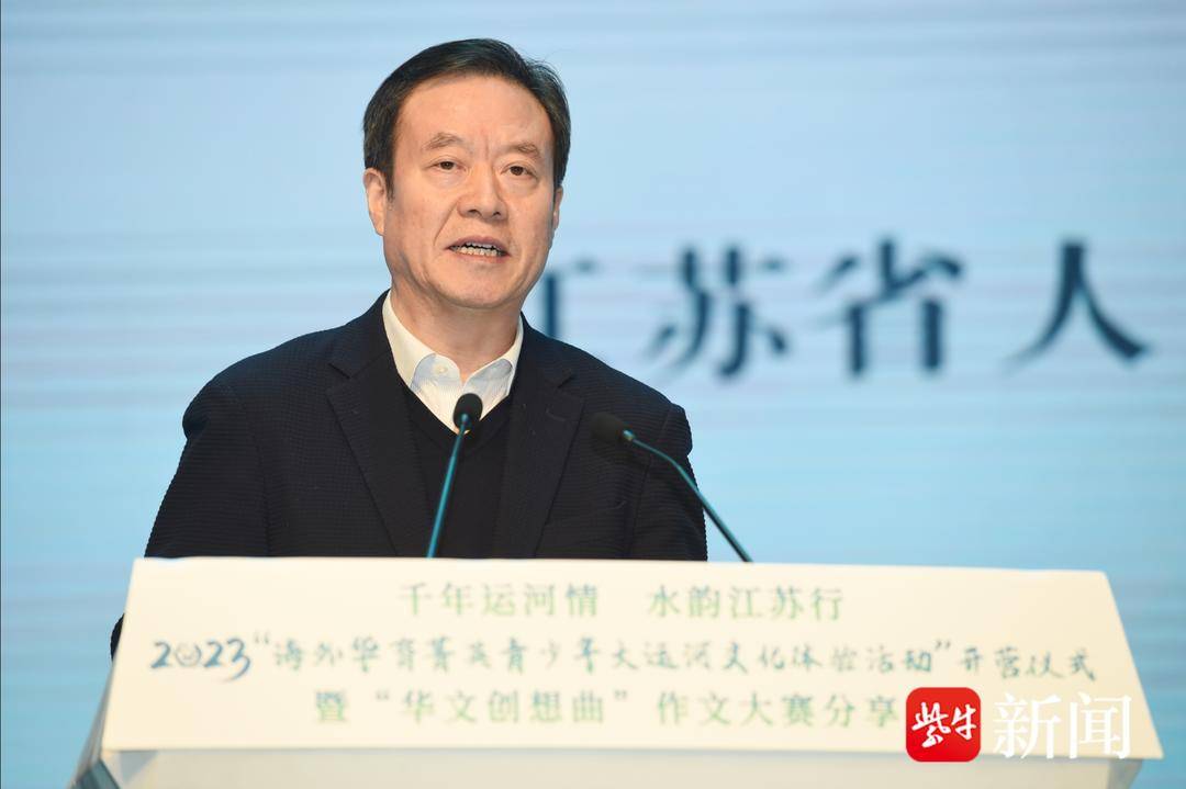 此次海外华裔菁英青少年大运河文化体验活动由江苏省侨办、江苏省海联会主办,邀请来自美国、德国、英国、澳大利亚、新西兰、西班牙、意大利等国家的155名海外华裔青少年以及华校老师共聚一堂,将在11天的时间里一同探索江苏的魅力,开启一段精彩纷呈的大运河文化体验之旅,分享一批文采飞扬的作文大赛优胜之作。在深入感受中华文化博大精深的过程中,增进华裔青少年之间的友谊,共同感受文化的力量、情感的纽带。省人民政府侨务办公室主任、省海外联谊会副会长徐开信出席启动仪式并讲话。