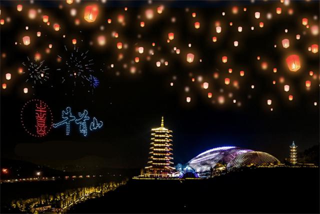今年灵山跨年撞钟活动继续推出传递福愿心灯、无人机&烟花秀、民俗表演等,400架无人机跨年倒计时,零点烟花大赏,将为新年献上第一份璀璨光华。