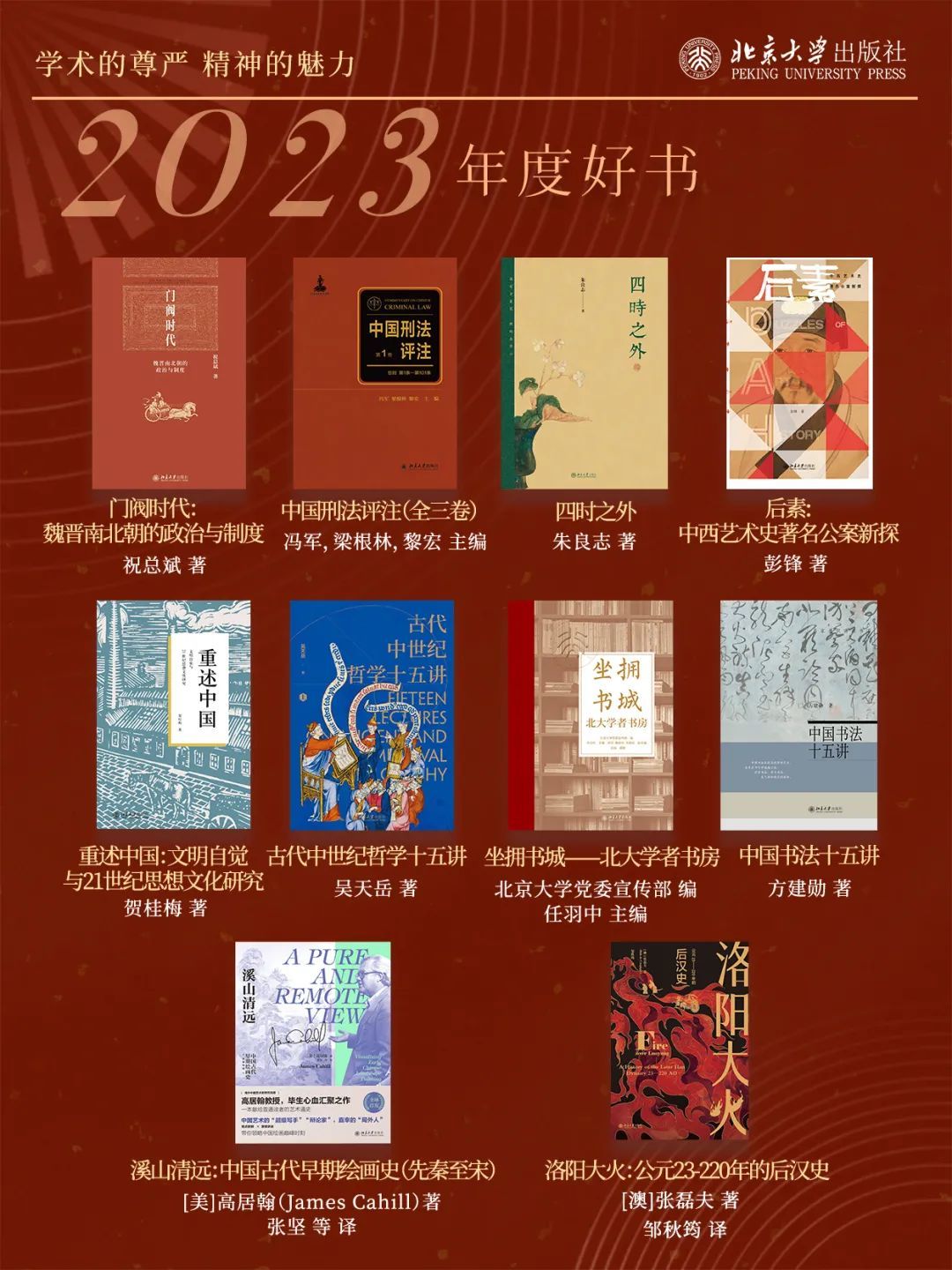 “学术的尊严、精神的魅力”一直是北大社的精神追求,2023年度好书代表了北大社过去一年来在内容深度、文化品位、学术传承和文化普及等方面的坚守与努力。