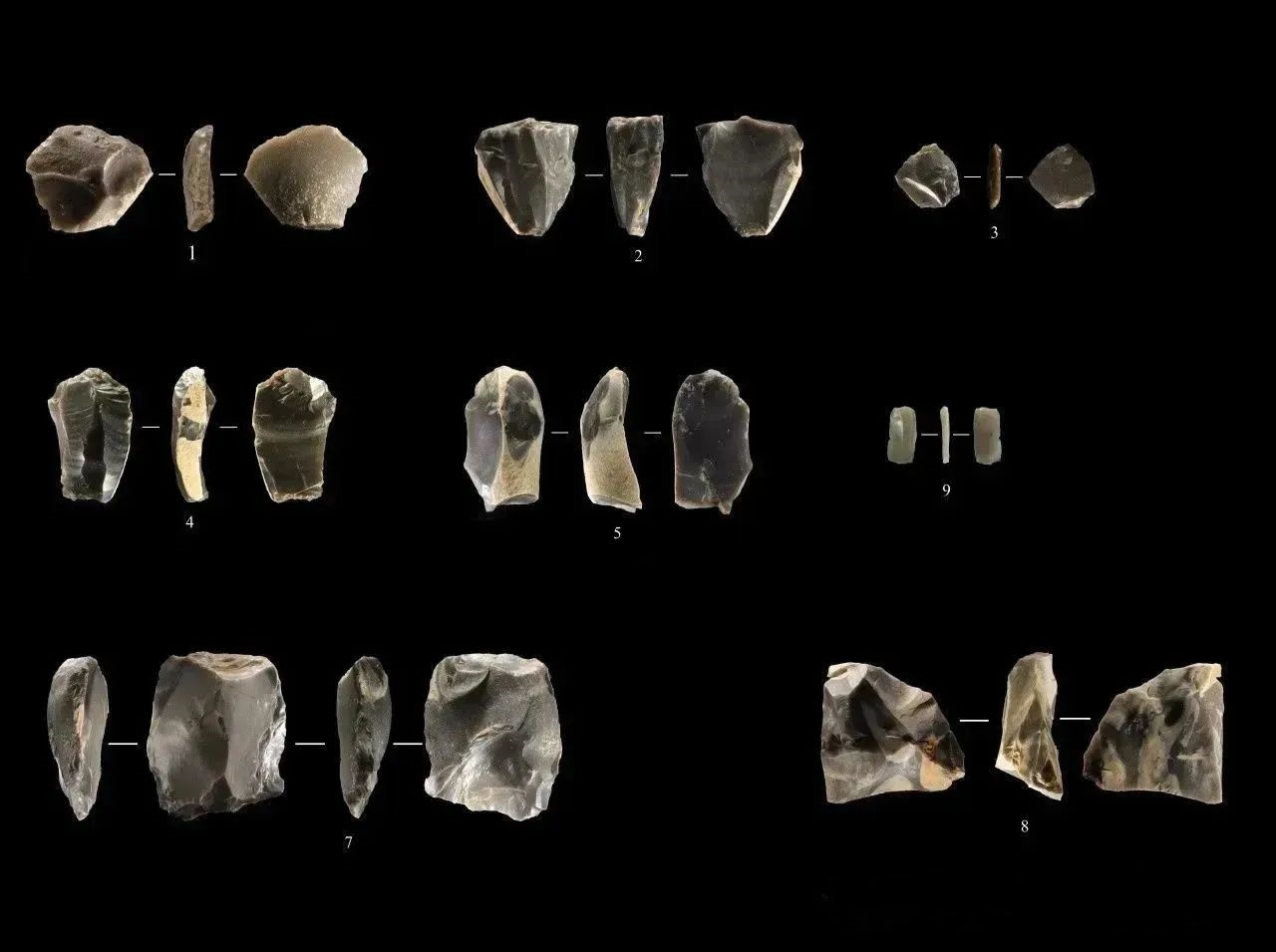 青池遗址第Ⅰ发掘区出土的打制石器(旧石器时代)(央广网发天津市文化遗产保护中心供图)