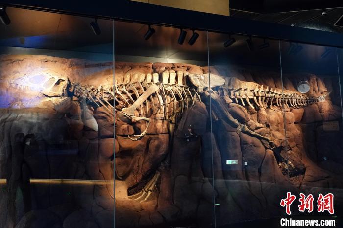 1月3日,目前亚洲规模最大的自然科学类专题博物馆——中国古动物馆(保定自然博物馆)建成后正式面向公众开放,图为该馆“镇馆之宝”之一的世界唯一中华猛龙“董氏中华猛龙”骨架化石。中新网记者 孙自法 摄