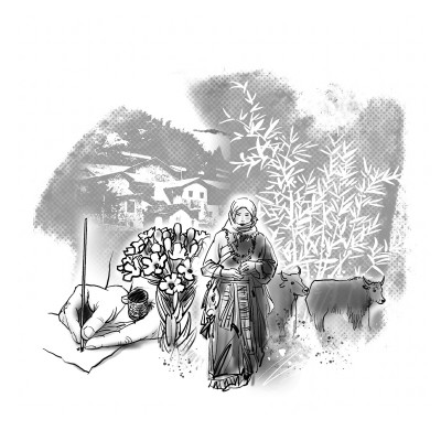 如果藏纸是造纸技术在高原的狼毒花上开出的铁线莲,造纸技术到了这温暖湿润的南方,与水竹共生,生出了屏纸,远销四方,养育这里的山民,那么,如果也以一种攀缘植物做比喻,那该是一种什么植物呢?