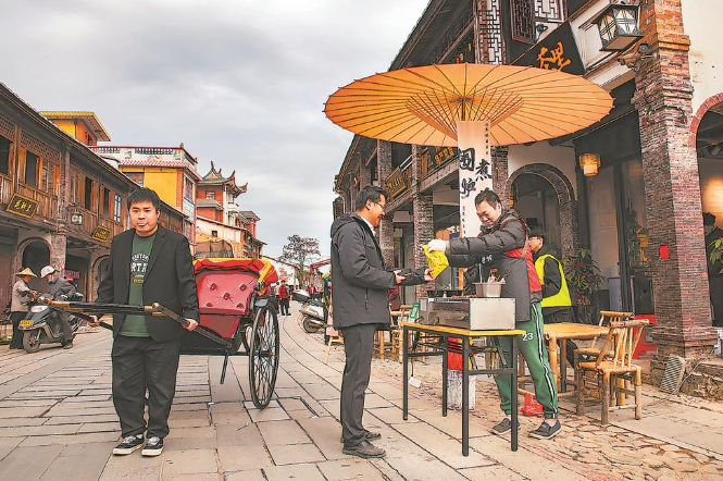 如今,行走在五里古街,脚踩石板路,在街口小店吃一碗特色小吃,在木质骑楼间踱步赏景,在“醋老弥香”闻那股迷人的酸香味道,在“侨韵五里”“古港剧场”“许港记忆”里找到曾经一度逝去的历史,在海丝寻梦、书香文苑、纸织成画、鹤武永春等四个景点徘徊,观看上演着具有地方特色的表演项目,找寻非遗文化的魅力,最后到“寻茶问道”浅酌一杯佛手清茶,已经成为不少当地人的生活日常,也成为游客的“心头之好”。