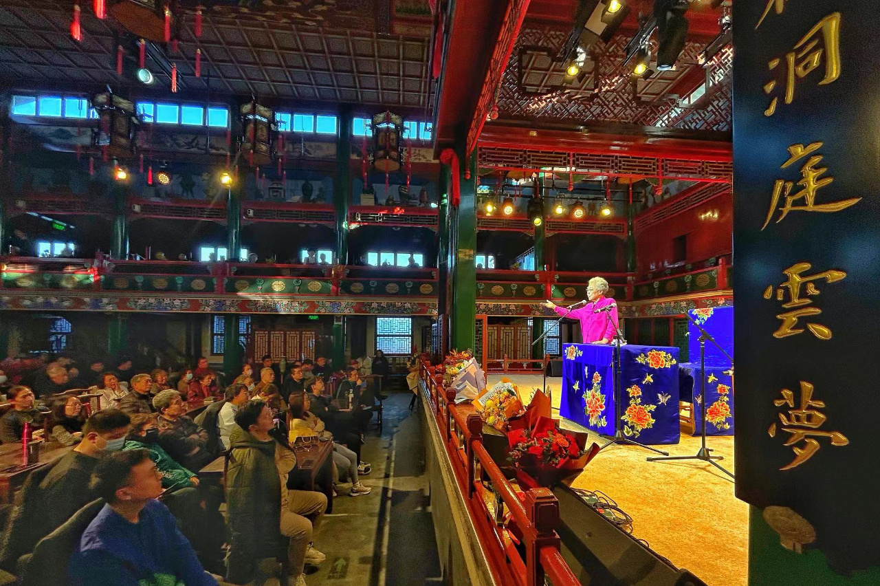 1月6日,国家级非物质文化遗产项目北京评书代表性传承人连丽如创办的宣南书馆率先入驻刚刚重张开业的湖广会馆,开启宣南书馆第799场演出。