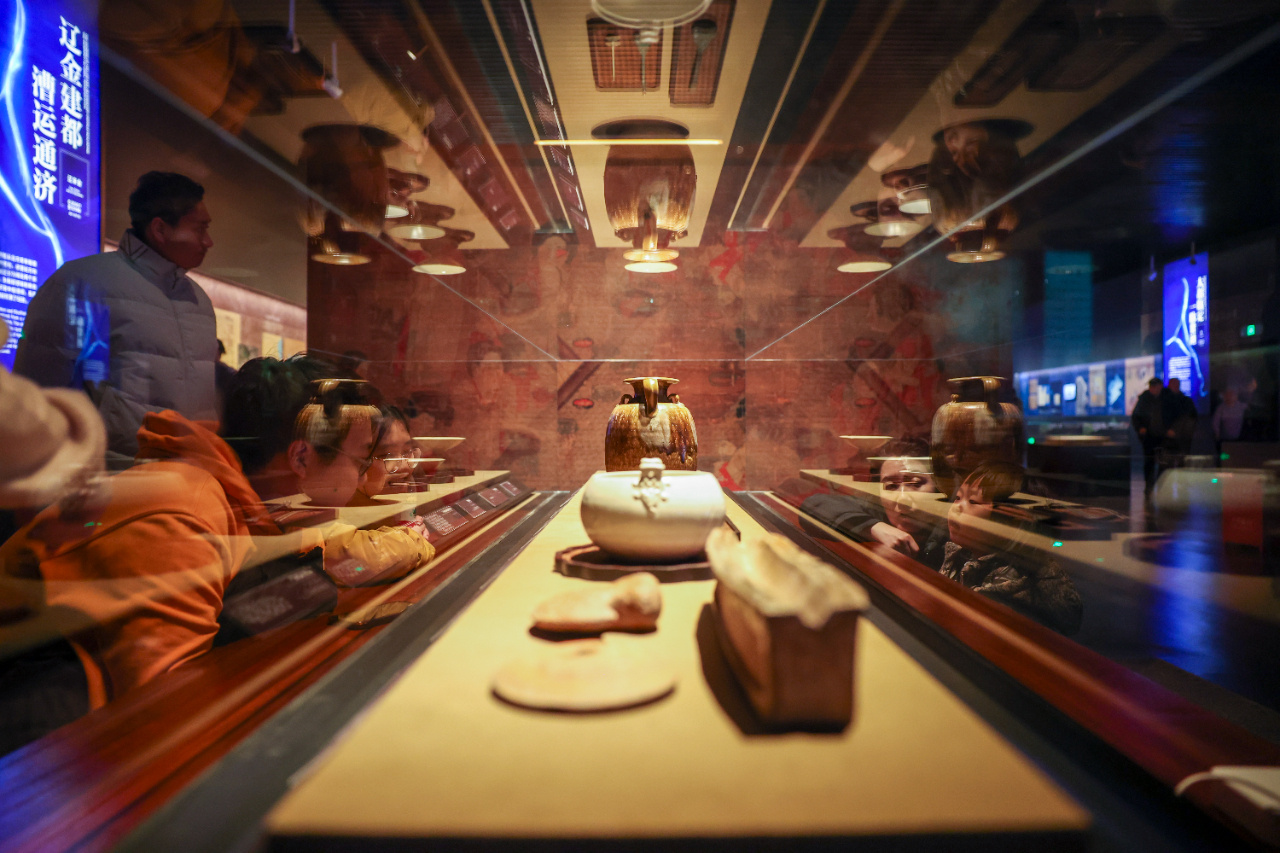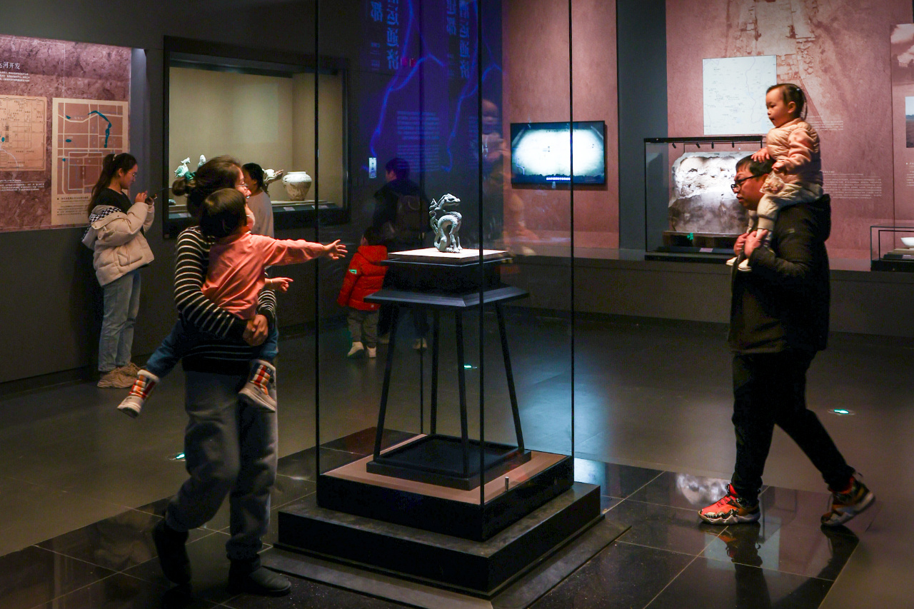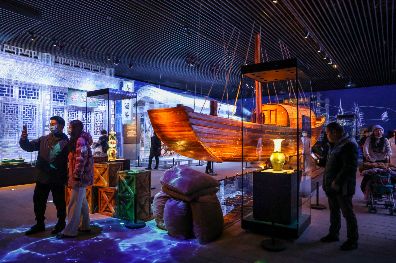 2024年1月7日,观众在北京大运河博物馆展厅内参观。