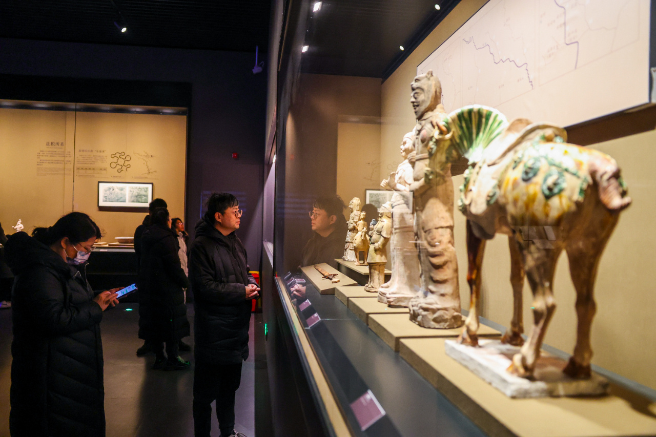 1月7日,观众在北京大运河博物馆展厅内参观。