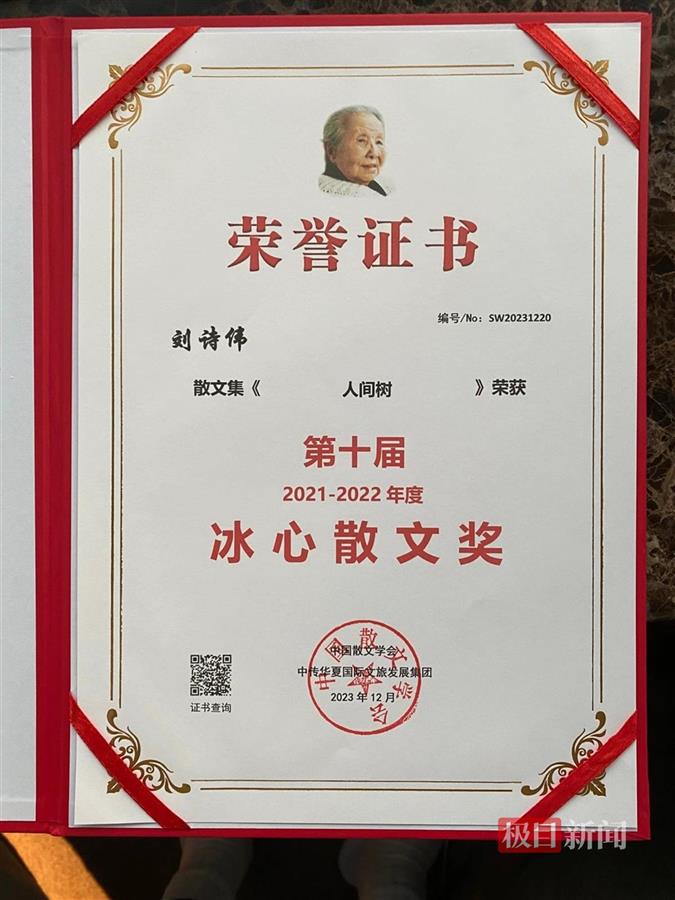 湖北作家刘诗伟近日接连斩获重要文学奖项,一是散文集《人间树》获冰心散文奖,一是长篇小说《一生彩排》入围2023“新芒文学计划”。