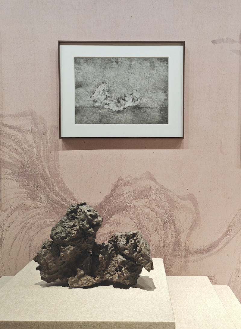 此次展览主题“石丑而文”,源自苏东坡《文与可梅竹石赞》:“梅寒而秀,竹瘦而寿,石丑而文,是为三益之友。”(南宋·罗大经《鹤林玉露》)关于“石丑而文”,后世多误读为“石文而丑”,这是清代郑板桥的《题画•石》中引用的——“米元章论石,曰瘦、曰绉(通皱)、曰漏、曰透,可谓尽石之妙矣。东坡又曰:‘石文而丑’。一丑字则石之千态万状,皆从此出。”这其实是个误会,两者意思有所不同。从苏东坡《文与可梅竹石赞》中的语境来看,无疑“石丑而文”是准确的,可以解释为:石头越是怪丑便越有文雅之趣。毫无疑问,“石丑而文”比起“石文而丑”意思更有内涵和精妙。所谓的奇石丑,既是指一种匪夷所思的抽象之态,也是指一种反人工秩序和反形式美。
