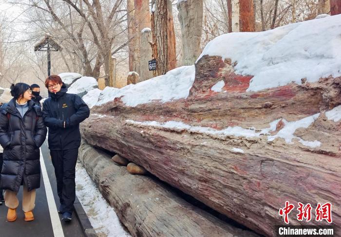 台胞青年在新疆古生态园参访硅化木。史玉江摄