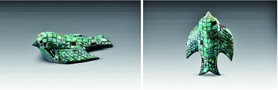 陕西省清涧县寨沟商代遗址出土的镶绿松石铜燕中国社会科学院考古研究所供图