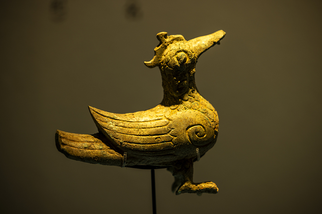 2024年2月2日,上海博物馆东馆,中国古代青铜馆展出的青铜鸡。