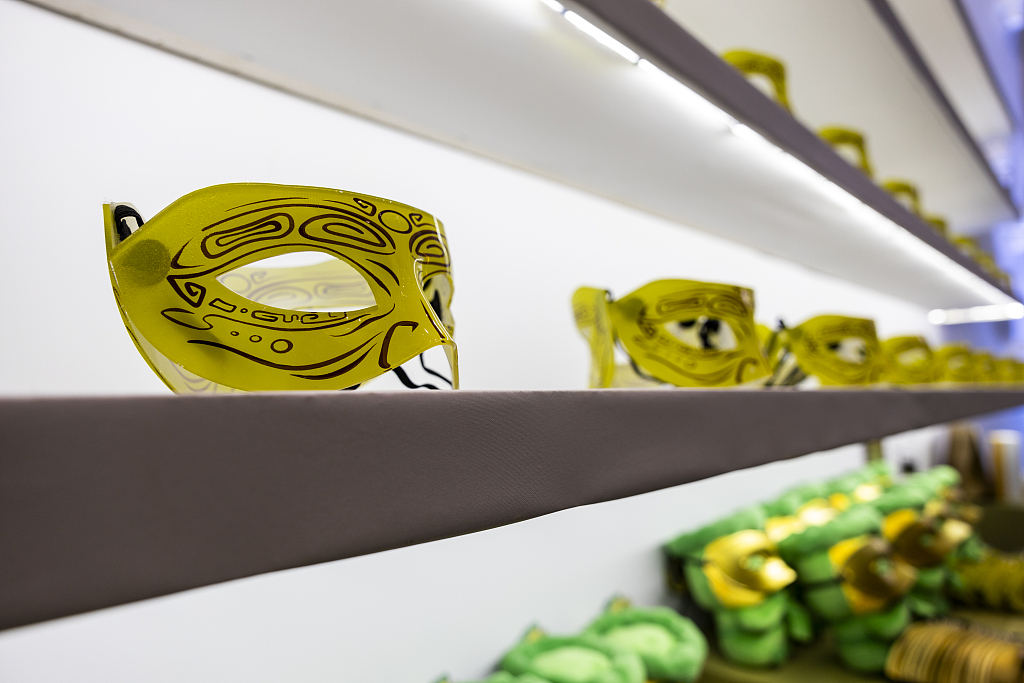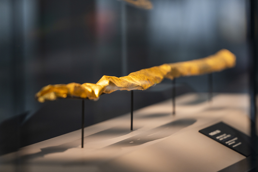 2024年2月2日,上海博物馆东馆,三星堆金沙文物展览中的金面具。