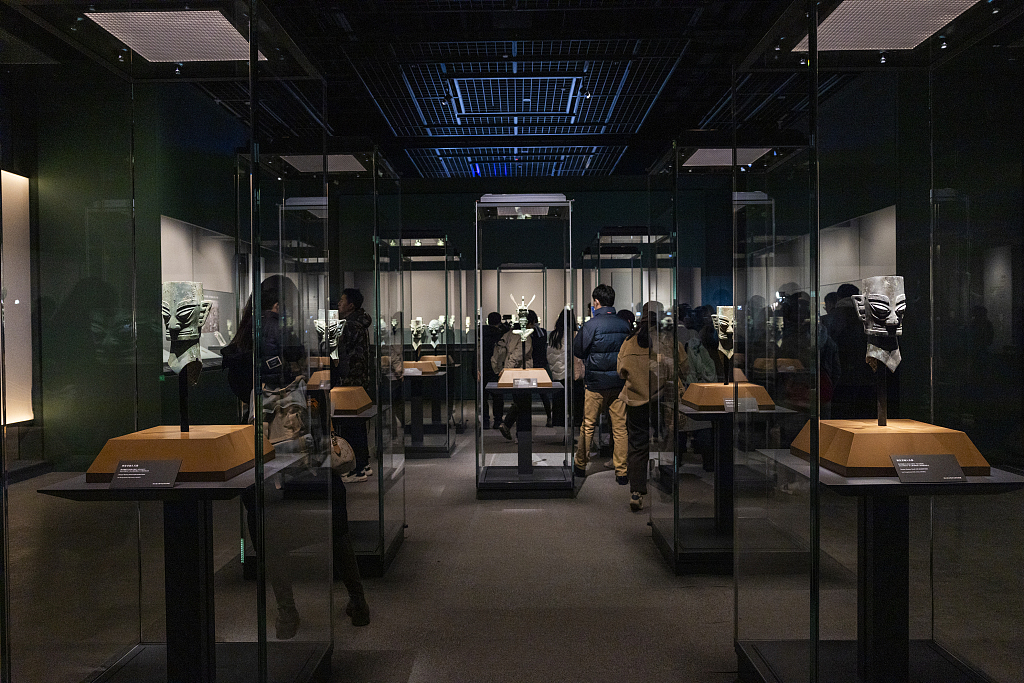 2024年2月2日,上海博物馆东馆,特展“星耀中国:三星堆·金沙古蜀文明展”现场。