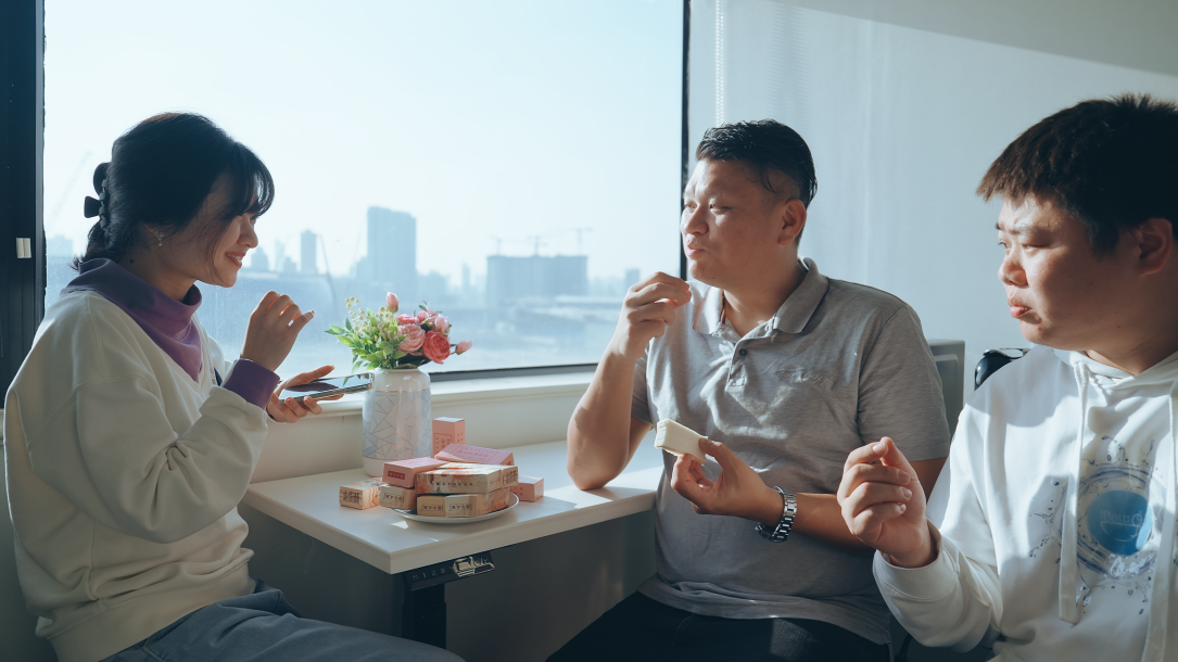 了解了云片糕蕴含着深港文化内涵,杨志华凭借着自己多年的设计优势与云片糕的传承人陈淦忠交流了如何让云片糕更为年轻人接受的创作灵感,联合创作了一款云片糕外包装,还可以在自己的网红餐厅里展示售卖。让更多深港年轻人知道合成号云片糕,了解非遗及背后的深港故事。